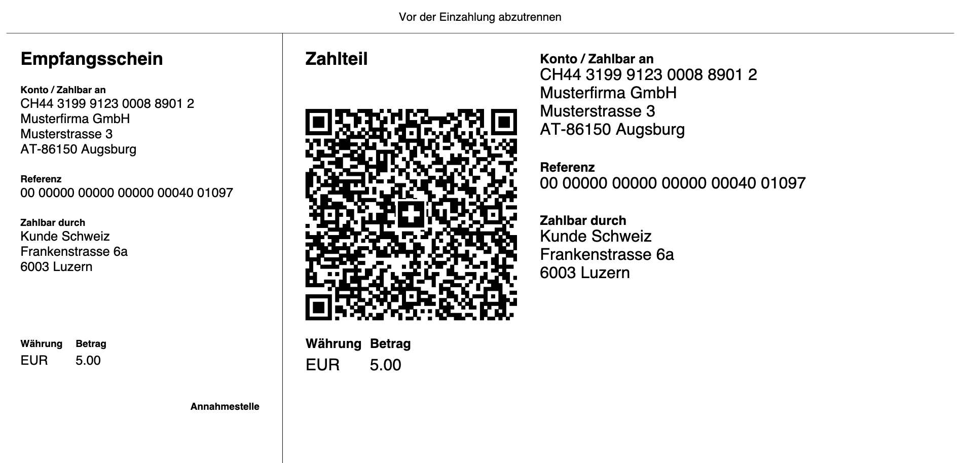 Wenn ihr einen Firmensitz und ein Bankkonto in der Schweiz habt, seid ihr verpflichtet eure Rechnungen mit dem Swiss QR Code nach dem schweizer Standard auszustellen. An die Rechnung wird somit der Zahlteil und Empfangsschein sowie der QR Code angefügt. Die QR Rechnung ersetzt hierbei die verschiedenen Einzahlungsscheine in der Schweiz.